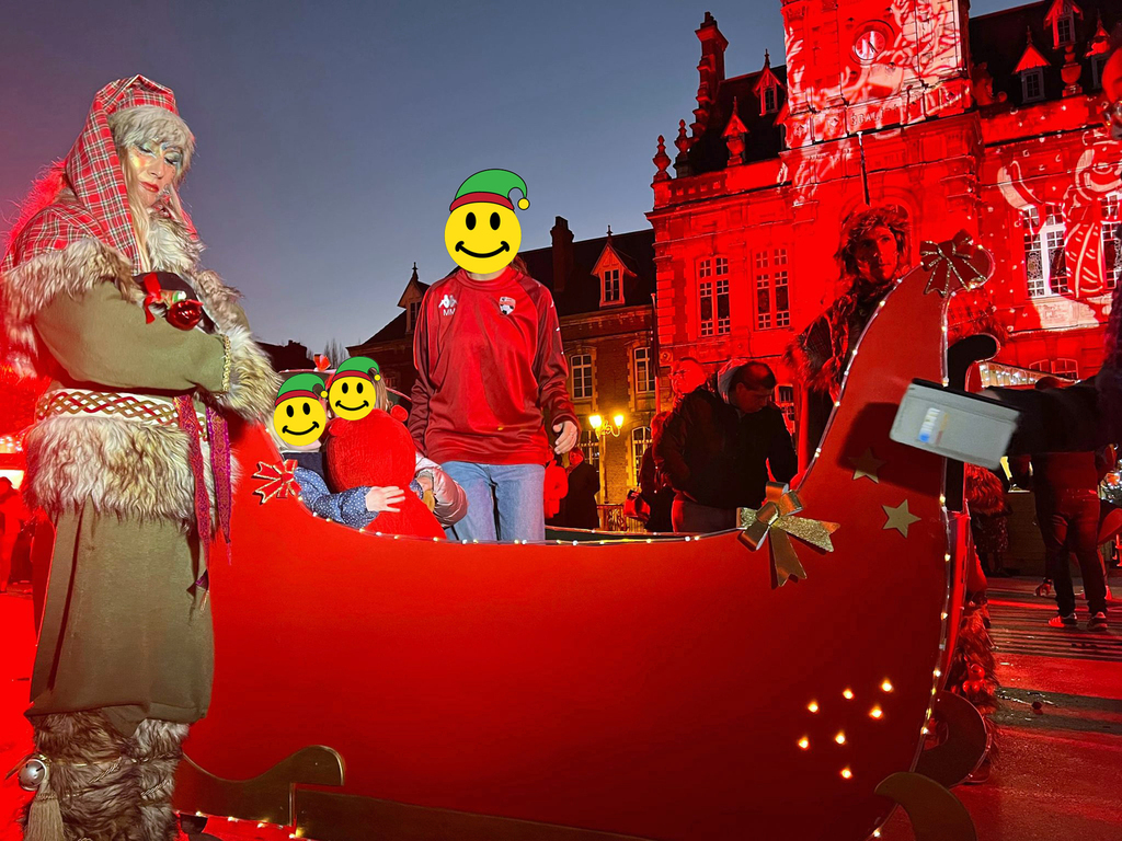 Le Traîneau est décoré, illuminé, sonorisé, et peu servir de point photo ou se déplacer dans le marché de Noël.